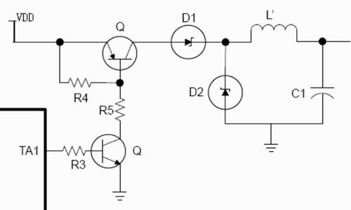 充電控制電路設(shè)計(jì)的核心是利用PWM控制MOSFET管的導(dǎo)通,MSP430F20X3系列時(shí)鐘頻率最高為16MHz。如果取PWM分辨率為9位,MOSFET管工作頻率為16000000/512=32768 (Hz),在音頻范圍外,不會(huì)產(chǎn)生噪聲??紤]到脈沖寬度與電源的輸出并非線性關(guān)系,電源輸出最多能控制到1/256,完全滿足設(shè)計(jì)精度的需要。原理圖如圖2。
