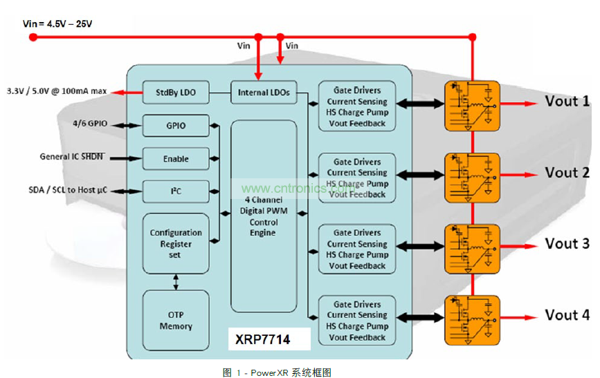 過(guò)去可以使用模擬電路或 FPGA 完成相移同步時(shí)鐘。 很遺憾,這會(huì)增加額外的組件、成本和開(kāi)發(fā)工作。令人欣慰的是,當(dāng)今市場(chǎng)上有多個(gè)數(shù)字 PWM 控制器集成了同步和相移。在本文中,Exar 的 PowerXR 技術(shù)展現(xiàn)了相移的優(yōu)點(diǎn),如圖 1 所示。