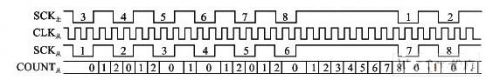 但由于主從時鐘之間是異步的,并且經(jīng)過了取整,所以正常時候SCK=1時的時鐘周期計數(shù)值COUNT應滿足:
