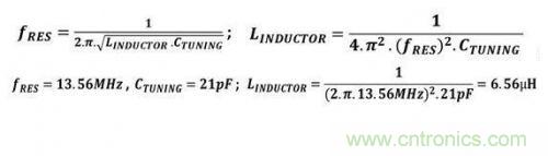 式1. PCB上集成的外部天線電感(LINDUCTOR)必須與標簽的內(nèi)部調(diào)諧電容(CTUNING)相匹配,使電路諧振點為13.56MHz。