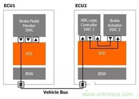 一旦設(shè)計(jì)人員對(duì)各項(xiàng)功能感到滿意,這些功能便會(huì)被映像或聚集到特定的硬件電子控制單元中。AUTOSAR可支持軟件組件的映像和聚集流程。一個(gè)復(fù)雜的ECU可能包含很多軟件組件,必要時(shí)可依照階層式的方式將它們組織起來(lái)。
