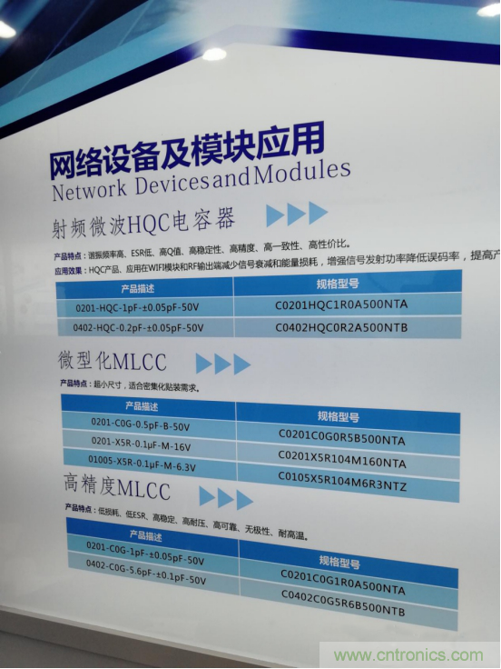 在展區(qū),宇陽科技展示了各種應用的電容,如網(wǎng)路設備及模塊應用射頻微波HQC電容器、手機應用中超微型MLCC、用于安防產(chǎn)品高溫型MLCC、用于汽車電子應用中的高容MLCC等。