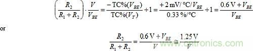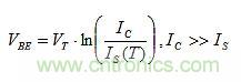 VT和IS都對TC(VBE)產(chǎn)生影響。IS對VBE的影響大于VT,且極性相反,導(dǎo)致對VBE的總影響約為–2mV/℃。因此,取消IS影響比VT的更重要。