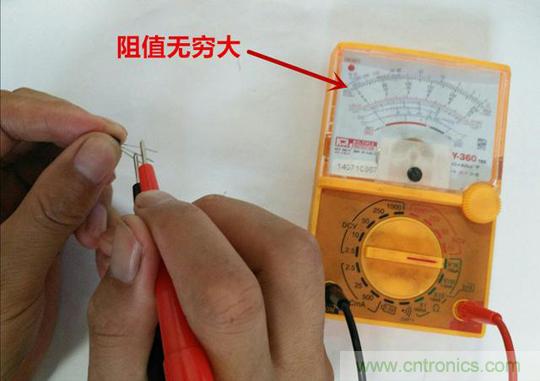 這里所講的使用的是指針式萬用表,其指針擺動(dòng)幅度、直觀、明顯,數(shù)字式的也可以,原理上一致,區(qū)別在于表筆極性上