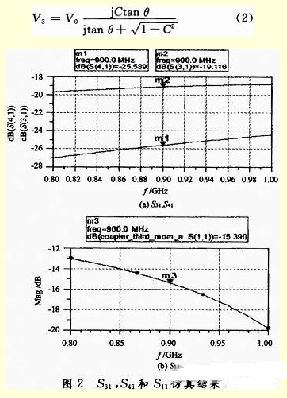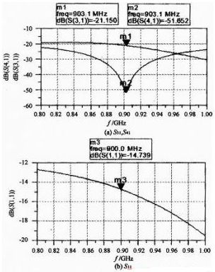 高阻抗線(xiàn)的一個(gè)重要結(jié)論是,其終端到耦合端的電長(zhǎng)度大約為90°。根據(jù)微帶耦合器理論,要達(dá)到最佳的耦合效果,耦合端和隔離端的長(zhǎng)度大約為90°,信號(hào)相位也相差90°。反射信號(hào)要與隔離端信號(hào)相差180°,在高阻抗線(xiàn)終端反射回耦合端的信號(hào)與耦合端原信號(hào)必須反向,這樣才能在傳輸90°以后和隔離端的信號(hào)正好反向。另外通過(guò)改變高阻抗線(xiàn)的線(xiàn)寬,可以調(diào)節(jié)反射信號(hào)的強(qiáng)弱。遵循這一原則,通過(guò)對(duì)高阻抗線(xiàn)的調(diào)節(jié),使得耦合器在 903MHz時(shí),達(dá)到-50dB的隔離度,并使定向性達(dá)到30dB以上。