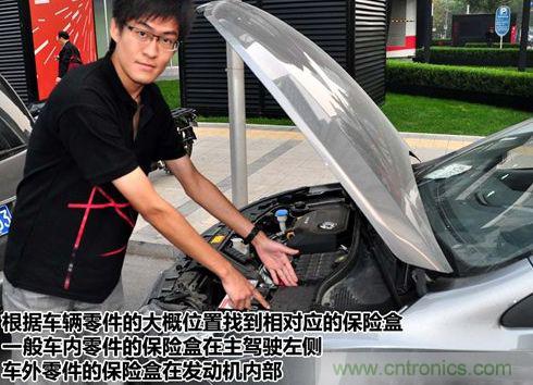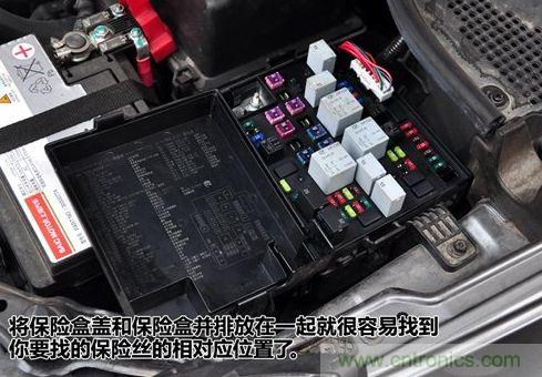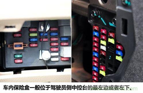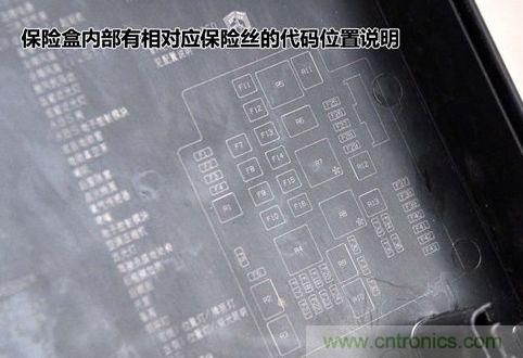 按保險盒蓋子內(nèi)的保險絲對照表我們可以查找到我們要找的保險絲位置。