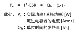 交流電流通過此類電容器時,會因電容器的電阻成分(ESR),產(chǎn)生式.1-1中所示的功率消耗Pe,則電容器發(fā)熱。