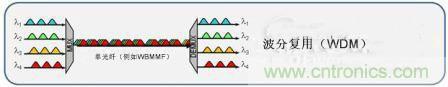 波分復用是通過由不同光的波長(顏色)隔離而成的多個通道上,經復用器匯合和分離而同時發(fā)送信號的技術。顧名思義,用于傳輸?shù)牟ㄩL頻帶被分為多段,每段都能用作通信的信道。將多個信道擠出來作為一個小頻譜是可能的。用于長途、單模系統(tǒng)的常見版本叫做密集波分復用或粗波分復用。在多模系統(tǒng)中,短波分復用技術正在出現(xiàn)。