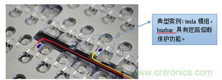 另外一種是電芯外部增加fuse的設計方案,比如在模組的busbar上設計薄弱的過流界面。模組短路時,busbar會熔斷,從而起到短路斷開功能。這樣設計有一個優(yōu)點:短路斷開時,電芯不會有反向電壓。同樣的,在pack系統(tǒng)中,該反向電壓會比較高,busbar熔斷常伴隨著拉弧等安全問題。