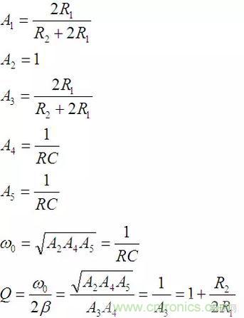 可以看出品質(zhì)因數(shù)Q只依賴(lài)于R1與R2的比值。而固有頻率只與RC的乘積有關(guān)。