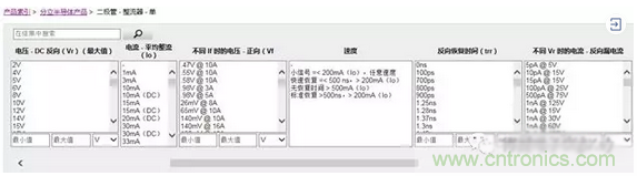 在Digi-Key網(wǎng)站,可以根據(jù)不同二極管類型及設計參數(shù)的要求,篩選合適的二極管。