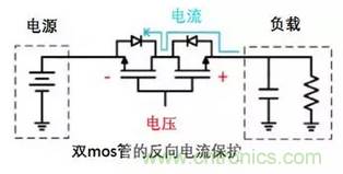 與MOS管一樣,負載開關可在關閉時阻止兩個方向上的電流(如下圖設計)。