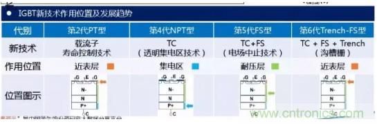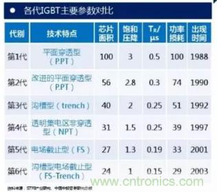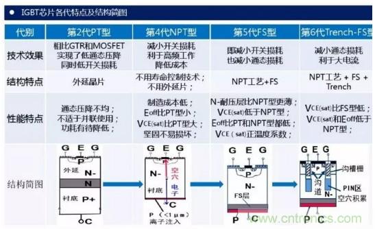 1985年前后美國GE成功試制工業(yè)樣品(可惜后來放棄)。自此以后, IGBT主要經(jīng)歷了6代技術(shù)及工藝改進。