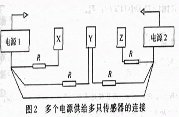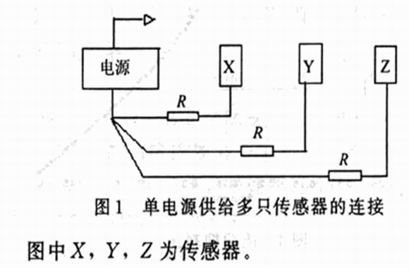 當(dāng)使用單電源供給多只傳感器時,其連接方法如圖1所示,以盡量減少接地電阻引進的干擾,若供電電源的壓降必須減到最小,則電源高端導(dǎo)線也可按相似的方法接線。