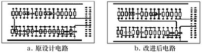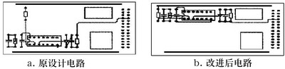 圖2取自某雷達發(fā)射機磁場控制保護PCB的部分電路。重新布局元器件后改進的PCB電路(如圖2b)較改進前的PCB電路(如圖2a)在抗干擾性能上有很大的改善。
