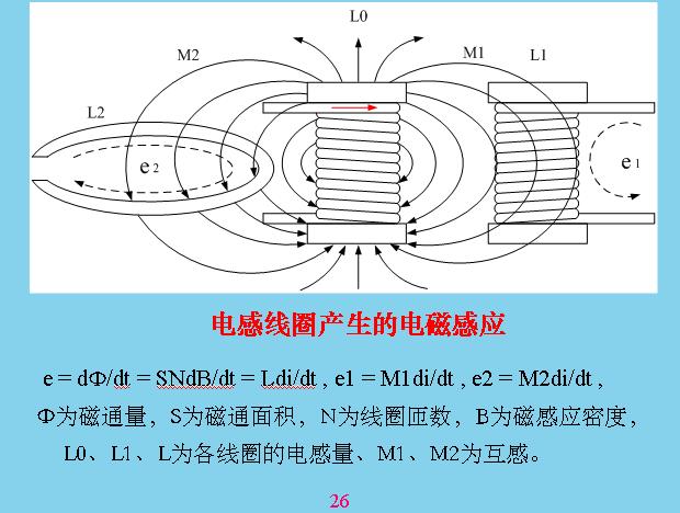 下面講磁場感應(yīng)與干擾。磁場只要有電容從導(dǎo)體里面流過就會產(chǎn)生磁場,磁場這個東西因為我們摸不到,所以現(xiàn)在我們都是用磁力線表示,我們可以判別它。這個磁場如果穿過周邊的電路,或者是其他電感線圈就會產(chǎn)生電子感應(yīng),這就相當(dāng)于一個有電流流過的電感線圈,會產(chǎn)生磁場,這個磁場對另外一個線圈也會產(chǎn)生感應(yīng)電壓。線圈對應(yīng)里面任何一個線路也會產(chǎn)生感應(yīng)電壓。所以電磁感應(yīng)就是因為磁力線穿過閉合回路而產(chǎn)生的,你要減少電壓的大小,就要減少干擾的大小,一個就是減少它的磁通量,感應(yīng)電壓與磁通量有關(guān),減少磁通量只能減少面積,減少圈圈的面積,或者減少磁場強度,磁場強度一般很難改變,你只能改變面積。另外,剛才說的干擾是位能改變才會干擾,如果只是一個通到位能不變,它不會干擾,永遠是一個1安培,位能不變不會干擾。干擾是位能不斷改變,一下子變成1安培,一下子變成2安培,一下子變成3安培,一下子又變成負的安培。