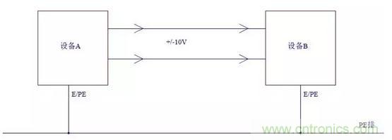 如下圖所示,如果兩個(gè)設(shè)備的零電位沒(méi)有很好的連接,即使設(shè)備A輸出的電壓信號(hào)是穩(wěn)定的,當(dāng)設(shè)備B的輸入端接收到時(shí)也會(huì)變?yōu)椴环€(wěn)定的。