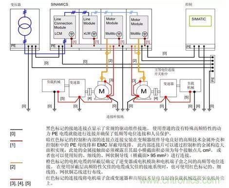 互相通信的設(shè)備也是一樣的,如果各自的零電位不一致,會(huì)導(dǎo)致信號(hào)幅值超差,不能正常通訊,具體表現(xiàn)為偶發(fā)通訊中斷和通訊端口損壞等故障,下圖為常見(jiàn)的電柜內(nèi)等電位接地示意圖。