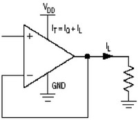 圖1單電源運(yùn)算放大器,帶有一個(gè)對(duì)地的電阻負(fù)載