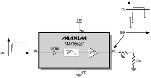 圖3MAX95091.8V應(yīng)用電路處理50%平場(chǎng)信號(hào),大大降低了功耗
