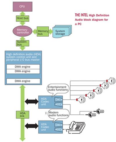圖1:Intel公司針對(duì)PC的高清音頻系統(tǒng)框圖。