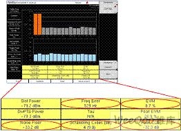 圖7:誤差矢量幅度(EVM)、峰值碼域誤差、頻率誤差、噪聲底電平測試界面。