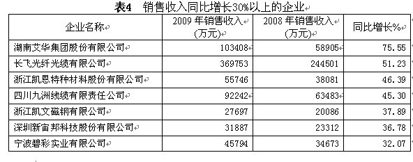 由于2009年受到金融危機(jī)的打擊,許多元件百強(qiáng)企業(yè)的生產(chǎn)經(jīng)營受到極大影響。僅有35家企業(yè)的銷售收入增長超過10%,比上屆的41家還少,更遠(yuǎn)低于第21屆時的65家。僅有湖南艾華集團(tuán)股份有限公司、長飛光纖光纜有限公司兩家企業(yè)的09年銷售收入同比增幅超過50%,分別增長了75.55%和51.23%。而上一屆,銷售收入同比增幅超過50%的企業(yè)仍有7家。值得一提的是四川九洲線纜有限責(zé)任公司,2008年的銷售收入增長110.16%,2009年的銷售收入再次增長45.30%,兩年間的平均增長率達(dá)到74.75%,獲得如此驚人的發(fā)展速度十分難得。