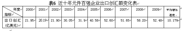 圖二 近10年來電子元件百強(qiáng)企業(yè)出口創(chuàng)匯增長圖