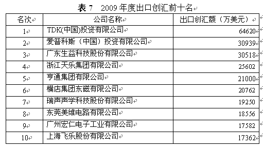 對于中國電子元件行業(yè)的外貿(mào)出口來說,2009年是一個從谷底緩慢爬升的過程。本屆元件百強(qiáng)中出口創(chuàng)匯總額為52.48億美元,同比下降10.38%,占銷售收入總額的28.81%,與上屆元件百強(qiáng)的出口總額相比,下降了9.83%。由于金融危機(jī)導(dǎo)致了外需萎縮,而且我國刺激內(nèi)需的各項政策效果明顯,一些元件百強(qiáng)企業(yè)開始更多地關(guān)注國內(nèi)市場,所以本屆元件百強(qiáng)的出口創(chuàng)匯額雖然下滑,但整體銷售收入仍然獲得增長。