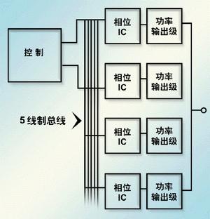 一種更有吸引力的方案是將以前分別由控制器和驅(qū)動器IC完成的功能在芯片內(nèi)重新劃分。對控制器來說,諸如可編程電壓鑒別電路、一個PWM斜坡振蕩器、一個誤差信號放大器、偏置電壓和檢錯等功能在一個多相設(shè)計中僅出現(xiàn)一次。驅(qū)動IC現(xiàn)在變成一個相位IC,管理該設(shè)計每一相位中所有要重復(fù)的功能。這些功能包括電流分配、PWM、相位時序、電流感應(yīng)和雙門驅(qū)動器。控制與相位IC之間的通訊由一種5線制模擬總線來完成,分別傳遞以下一些信息:偏置電壓、相位時序、電流感應(yīng)/分配、PWM控制和參考調(diào)節(jié)電壓。