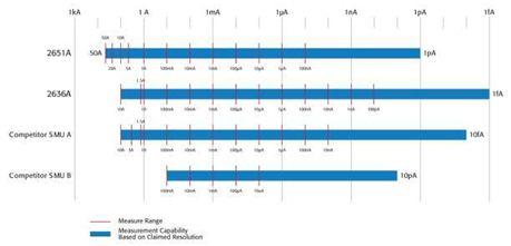 圖1 與競爭對(duì)手相比,吉時(shí)利SMU有更寬的動(dòng)態(tài)范圍