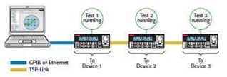 基于對(duì)SMU技術(shù)的理解,Mark A Cejer對(duì)競爭者推出的SMU產(chǎn)品也作出了自己的評(píng)價(jià)。他表示,NI的產(chǎn)品大都基于PXI總線,這在功率上就會(huì)受到限制;另外將眾多的板卡放在一個(gè)機(jī)箱中,溫度引起的噪聲影響也是一個(gè)問題。與Agilent的產(chǎn)品相比,吉時(shí)利的SMU由于采用了專利的TSP技術(shù),因此可以將測試腳本程序上載到機(jī)器中,只需一個(gè)指令即可運(yùn)行整個(gè)程序,而Agilent的產(chǎn)品只能逐條讀取和執(zhí)行程序指令,所以吉時(shí)利的SMU可以實(shí)現(xiàn)更高的測試速度;同時(shí)通過TSP-Link虛擬背板技術(shù),可以靈活地實(shí)現(xiàn)多臺(tái)SMU的連接,在提高測試吞吐量的同時(shí)實(shí)現(xiàn)很高的測試效率。