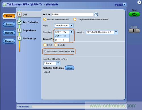 SFP+QSFP+Tx解決方案利用簡(jiǎn)單的菜單驅(qū)動(dòng)式測(cè)量設(shè)置以及提供一鍵式一致性測(cè)試,加上自動(dòng)的“通過(guò)/失敗”報(bào)告生成,幫助提高測(cè)試測(cè)量效率。除標(biāo)準(zhǔn)的一致性要求外,該解決方案還支持設(shè)計(jì)鑒定,并具有對(duì)測(cè)試配置(如分析窗口和其他參數(shù))的靈活控制。如對(duì)設(shè)計(jì)的一致性測(cè)試失敗,使用者可利用DPOJET(抖動(dòng)和定時(shí)分析)設(shè)置文件來(lái)減少調(diào)試時(shí)間。