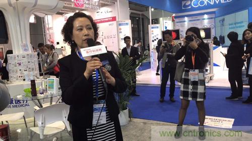 本次展會上,科瑞康醫(yī)療總經(jīng)理王佳介紹了科瑞康醫(yī)療強勢推出的“智慧醫(yī)療、共享健康”整體解決方案及監(jiān)護儀新品,還有針對女性的盆底康復治療系統(tǒng)。王經(jīng)理從容詳細的講解,引來眾多觀眾圍觀。