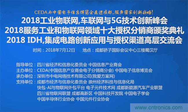 【導(dǎo)讀】中國(guó)芯片產(chǎn)業(yè)如何快速騰飛?CEDA認(rèn)為,通過應(yīng)用方案和授權(quán)渠道能快速占領(lǐng)市場(chǎng)。作為電子元器件的授權(quán)代理商協(xié)會(huì)組織,CEDA在中國(guó)信息產(chǎn)業(yè)商會(huì)的領(lǐng)導(dǎo)下服務(wù)國(guó)家創(chuàng)新和供應(yīng)鏈戰(zhàn)略。7月12日(中國(guó)電子信息博覽會(huì)期間),CEDA將在成都世紀(jì)城驕子國(guó)際會(huì)議中心舉辦2018工業(yè)物聯(lián)網(wǎng), 車聯(lián)網(wǎng)與5G技術(shù)創(chuàng)新峰會(huì),嘉獎(jiǎng)服務(wù)工業(yè)與物聯(lián)網(wǎng)領(lǐng)域的優(yōu)秀電子元器件授權(quán)分銷商并舉辦IDH,芯片設(shè)計(jì)公司,元件公司和授權(quán)代理商高層的交流會(huì)。