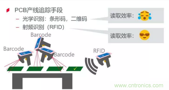 對于外觀相似的PCB板,精準分揀和每一道工序的數(shù)據(jù)記錄依賴于每塊板上的身份識別碼。傳統(tǒng)的光學身份識別需要掃碼槍對準板上二維碼位置和方向一一掃描,這對于柔性生產(chǎn)而言顯得效率低下。因為同一生產(chǎn)線的型號生產(chǎn)經(jīng)常切換,掃碼槍的對準位置也要跟著頻繁調(diào)試和測試。
