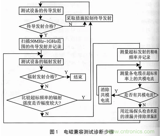 圖1給出了一個設備或系統(tǒng)的電磁干擾發(fā)射與故障分析步驟。按照這個步驟進行,可以提高測試診斷的效率。