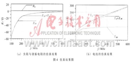 從圖4(a)的仿真結(jié)果可以看出,在200MHz附近,RIN+RL<0,所以滿足起振條件,由于RIN的負(fù)阻比較大,所以提供交流能量的能力比較強,故振蕩的幅度會比較大,這一點在后面的仿真和測試中可以得到證實。從圖4(b)可以看出,當(dāng)f為200MHz左右時,XIN+XL=0,從而滿足相位平衡條件,它決定了振蕩的頻率。
