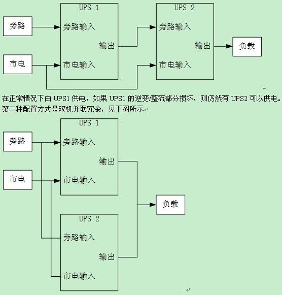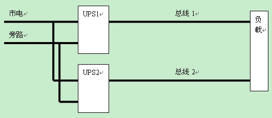 對于一般的UPS系統(tǒng)應用來說,存在兩種常見的配置方式,一種是雙機熱備份,見下圖所示