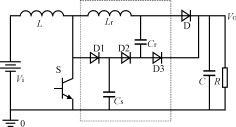 這種新型無(wú)源軟開(kāi)關(guān)變換器在Boost基本拓?fù)浠A(chǔ)上附加了一個(gè)子電路,如圖1虛框中所示。