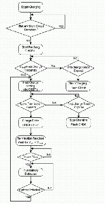 圖6所示為鋰離子電池充電器的標(biāo)準(zhǔn)充電流程,首先充電IC偵測是否有輸出短路或是過載的保護(hù)模式,若系統(tǒng)一切正常接著偵測電池初始電壓是否達(dá)到 3V以上,高于3V者就直接以快充模式進(jìn)行高電流充電,若電池低于3V者,進(jìn)入預(yù)充電模式,以快充的10%進(jìn)行充電,喚醒電池并避免電池?fù)p壞。在預(yù)充電階段,仍隨時偵測電池電壓,達(dá)到3V后可隨即切入快充模式。