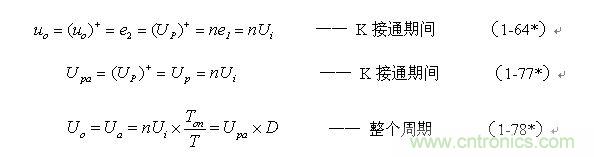 根據圖1-17,加到開關器件(控制開關)兩端的峰值電壓UKP正好等于輸入電壓Ui與反電動勢峰值Up-之和,即: