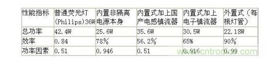 也就是說,直接替換的結(jié)果是效率大大降低,對于國產(chǎn)電感鎮(zhèn)流器,效率只有56.2%。只比普通熒光燈節(jié)電6.8W。