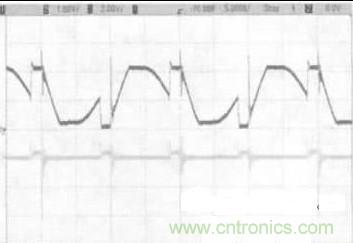 當(dāng)某一PWN信號(hào)的下降沿來(lái)臨時(shí),其控制的開(kāi)關(guān)元件關(guān)斷,由于原邊能量的儲(chǔ)存和漏電感的原因,漏極產(chǎn)生沖擊電壓,大于2UI,因?yàn)榧尤肓薘C緩沖電路,使其最終穩(wěn)定在2UI附近。