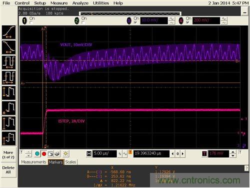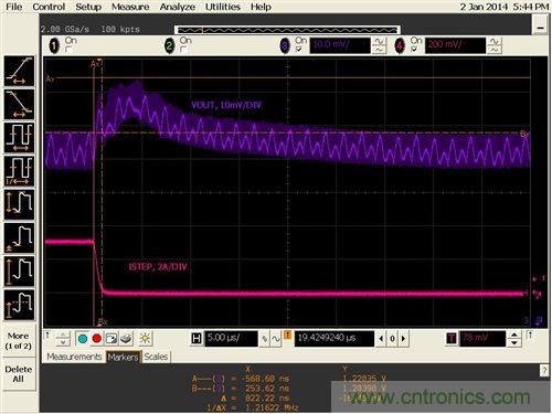 圖5:TPS53319(Vout=1.2V)的負(fù)載瞬態(tài)響應(yīng)