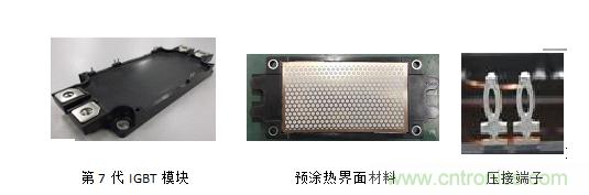 第7代IGBT模塊,可以應用在通用變頻器、伺服驅動器及不間斷電源。它采用了第7代IGBT硅片和二極管硅片,降低損耗;具有650V、1200V和1700V三種電壓等級;涵蓋模塊電流75A至2500A;兼容現有市場主流產品封裝;提高產品熱循環(huán)壽命和功率循環(huán)壽命;采用預涂熱界面材料(PC-TIM),與傳統(tǒng)硅脂相比,模塊與散熱器的接觸熱阻降低70%;NX封裝具有焊接方式和壓接方式兩種控制端子可供選擇。