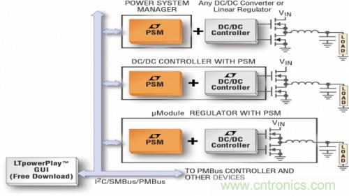 由于要面對(duì)這些挑戰(zhàn),因此凌力爾特決定開(kāi)發(fā)一個(gè) PSM 產(chǎn)品線,其包括具集成型功率 FET 柵極驅(qū)動(dòng)器和豐富齊全之電源管理功能 (通過(guò)基于 I2C 的 PMBus 來(lái)使用) 的同步降壓型 DC/DC 控制器。這些功能包括高精度基準(zhǔn)和可提供 ±0.5% DC 準(zhǔn)確度的溫度補(bǔ)償型模擬電流模式控制環(huán)路、經(jīng)過(guò)校準(zhǔn)以不受工作條件之影響的簡(jiǎn)易型補(bǔ)償、逐周期電流限制、快速和準(zhǔn)確的均流、以及針對(duì)線路電壓和負(fù)載瞬變的響應(yīng),并不存在任何與 ADC 量化相關(guān)聯(lián)的誤差,此類(lèi)誤差是采用 “數(shù)字” 控制之產(chǎn)品中所常見(jiàn)的。該產(chǎn)品線的某些產(chǎn)品還內(nèi)置了可提供輸入和輸出電壓及電流、占空比和溫度之?dāng)?shù)字回讀的 16 位數(shù)據(jù)采集系統(tǒng)。另外,還整合了通過(guò)一個(gè)中斷標(biāo)記及一個(gè) “黑匣子” 記錄器 (其負(fù)責(zé)存儲(chǔ)發(fā)生某種故障之前的轉(zhuǎn)換器工作狀況) 實(shí)現(xiàn)的故障記錄功能。