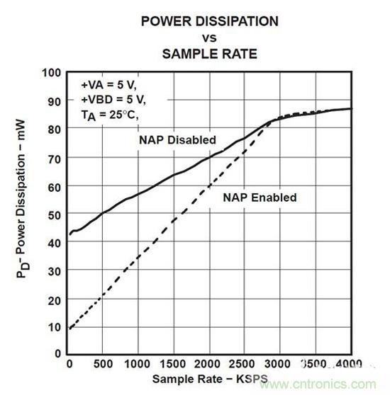 下圖 1 直接顯示了我們 12 位、4MSPSADS7881SAR ADC 的功耗情況,是功耗顯著降低的很好例證。