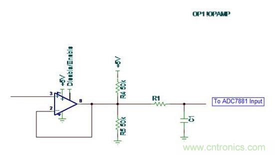 ADS7881的最低有效位 (LSB) 大約是 610mV。OPA836最大輸入失調(diào)電壓達(dá) 500uV,可充分滿足 12 位應(yīng)用需求。