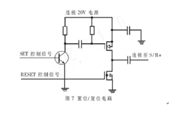 得到需要的電壓后,設(shè)計圖騰柱式置位復(fù)位電路,如圖7所示。圖中SET和RESET可以各連接MCU的一個引腳,當SET為高傳感器時置位;RESET為高電傳感器時復(fù)位。